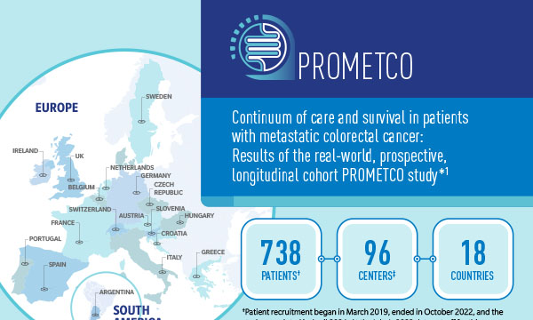 The purpose of PROMETCO is to provide real-world data on overall survival, treatment patterns, associated effectiveness and safety, and impact on patients with mCRC throughout the continuum of care1